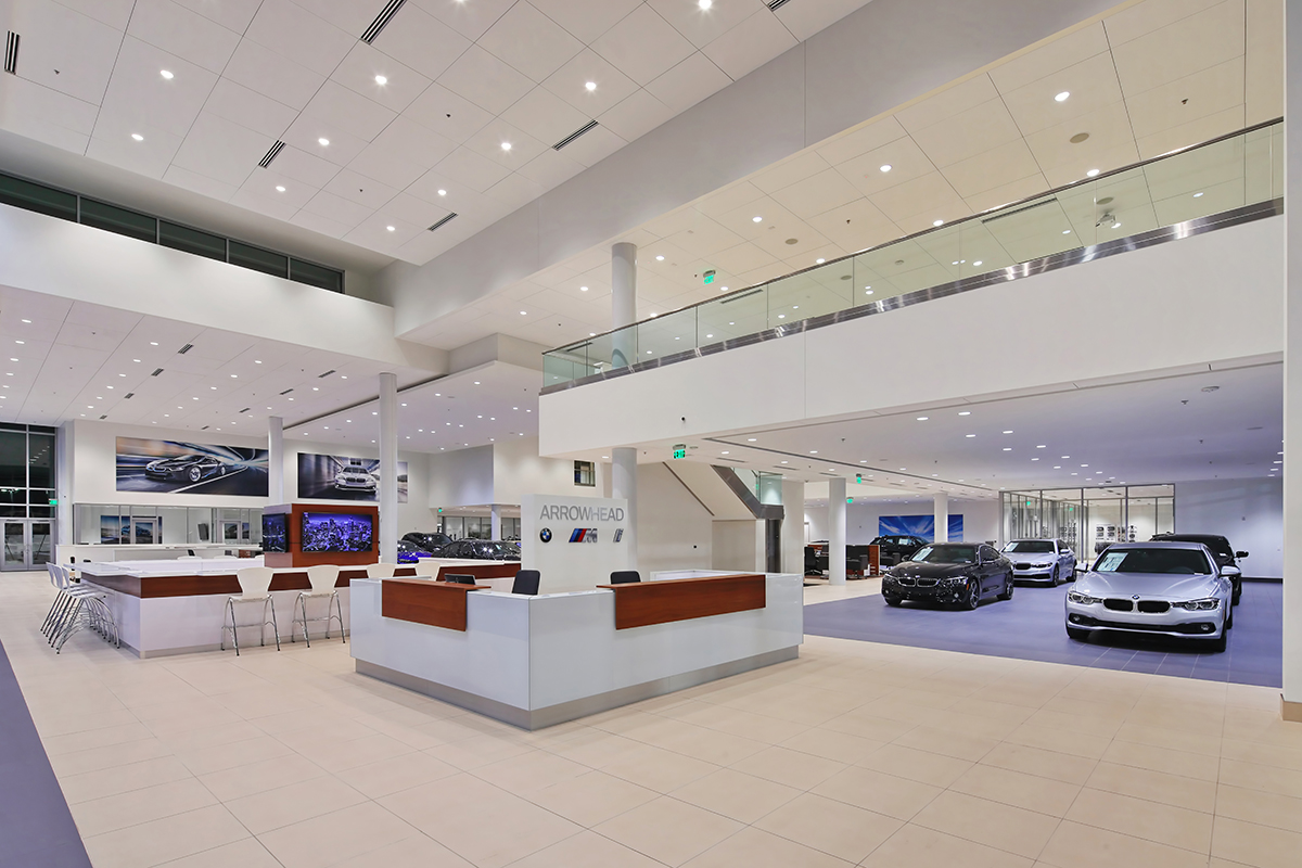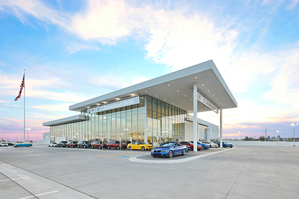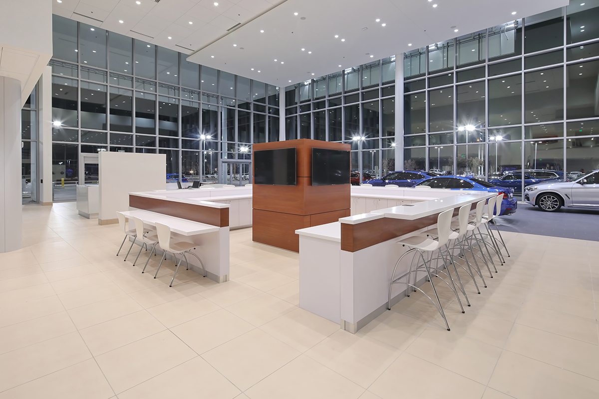 Modern, clean lines paired with a soaring light-filled 2-story showroom create an elevated experience at this large facility. The building sits on a 13.3 acre site that is highly visible to a freeway and contains 39 state-of-the-art service bays.